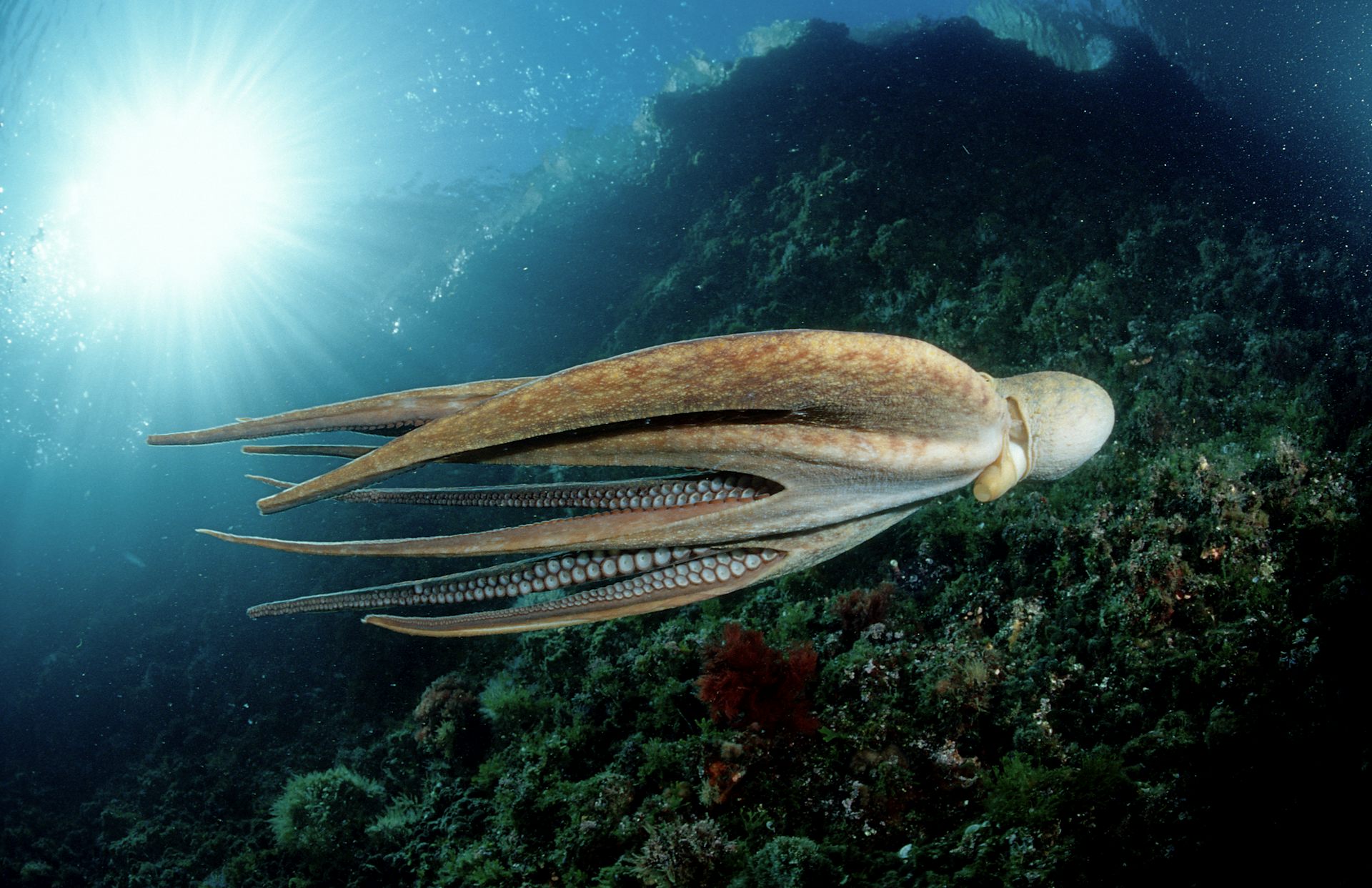 Une pieuvre commune (Octopus vulgaris) au large de la Croatie, dans la mer Méditerranée.