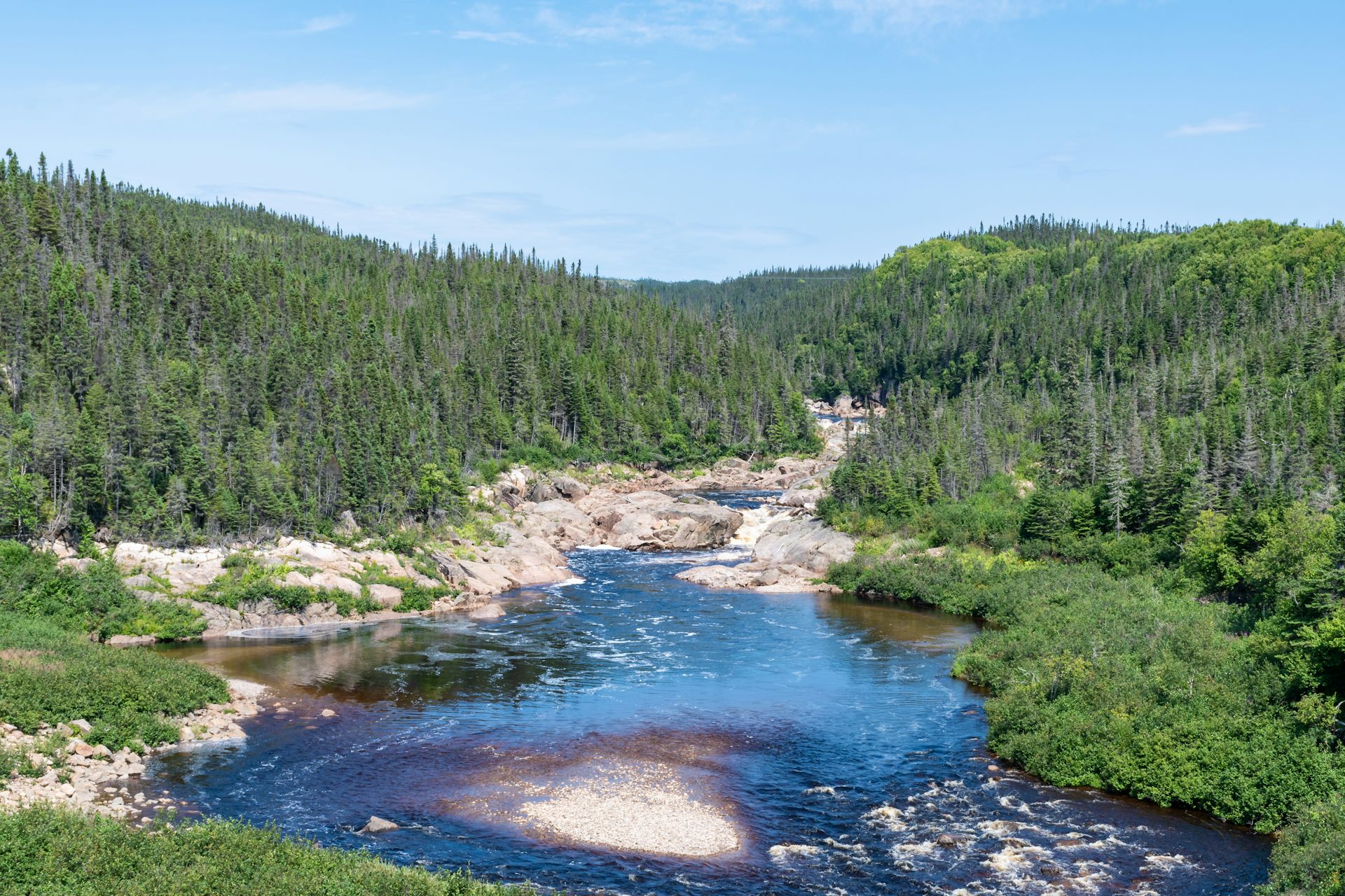 Une rivière sauvage sur la Côte-Nord. L'entente entre Hydro-Québec et les Innus d’Unamen Shipu survient alors que le gouvernement québécois cherche à développer sa filière batterie en évaluant le potentiel en minéraux critiques et stratégiques sur leur territoire, et plus largement sur celui de la Basse-Côte-Nord.