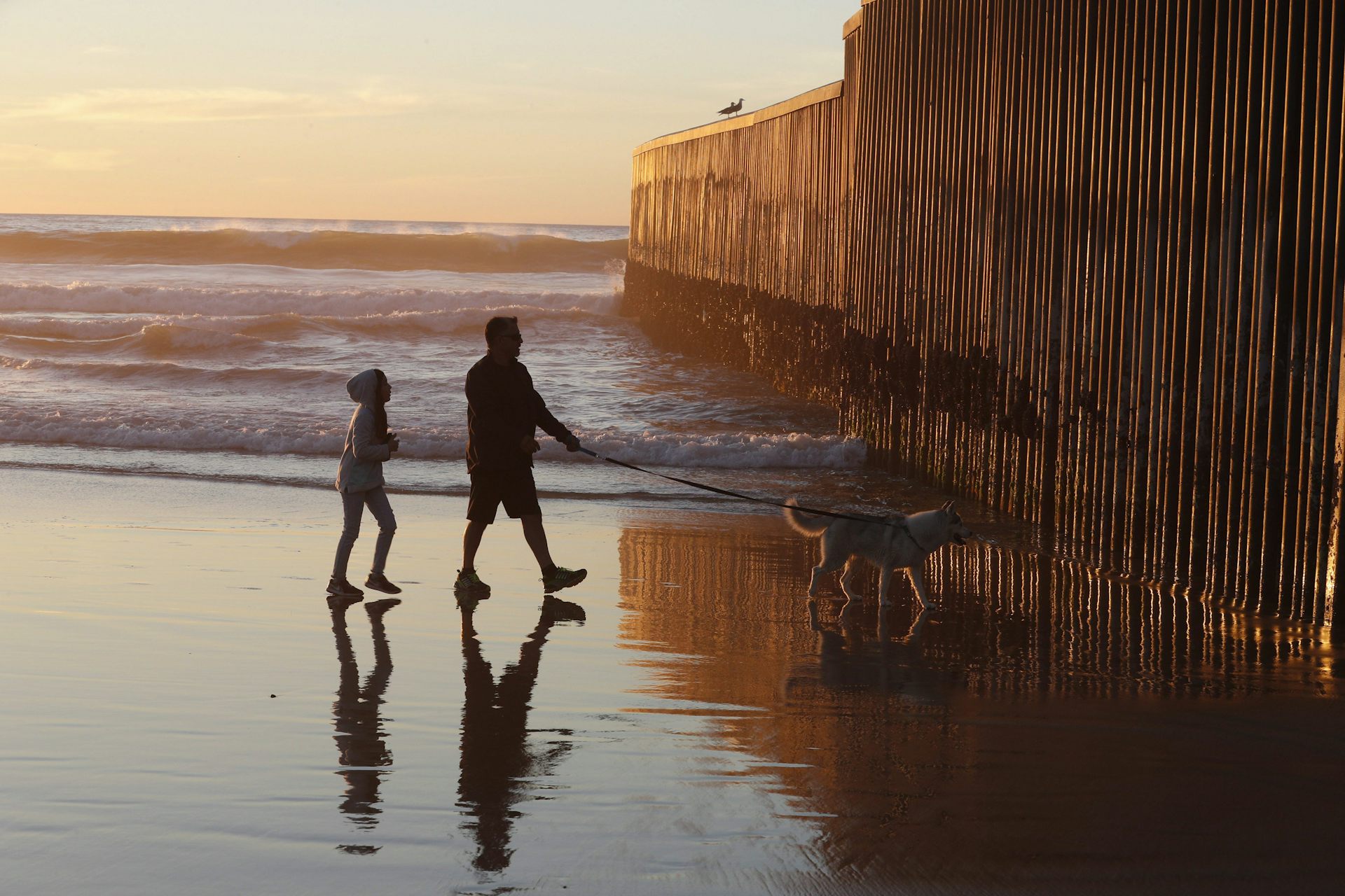 People walk on the beach towards the U.S. border wall in Tijuana, Mexico, in December 2018. Canada appears poised to bend to Donald Trump’s will on border security.