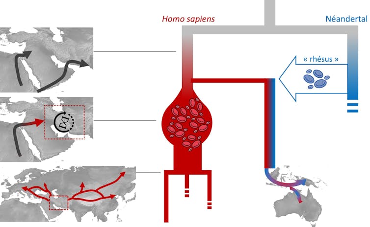L’analyse des groupes sanguins des premiers Homo sapiens d’Eurasie montre qu’ils ont acquis une nouvelle palette de groupes sanguins juste après leur sortie d’Afrique il y a 60 000 ans, contrastant avec celle des Néandertaliens. Cette diversification se serait produite au Proche-Orient et pourrait doter Homo sapiens d’un nouvel arsenal adaptatif. C’est ce que révèle l’étude faite par notre équipe du laboratoire d’anthropologie bioculturelle, droit, éthique et santé. Cette étude vient tout juste de paraître dans la revue Scientific Reports.