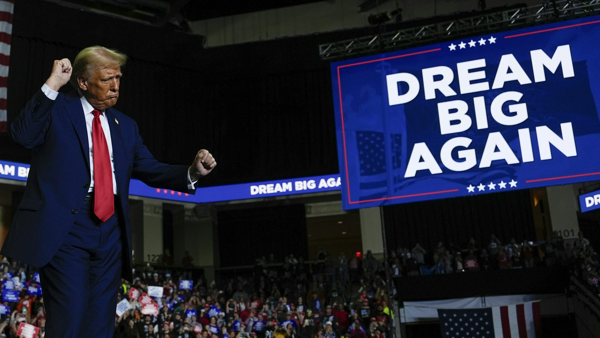 Donald Trump dances at a campaign rally at the PPL Center, Oct. 29, 2024, in Allentown, Pa.