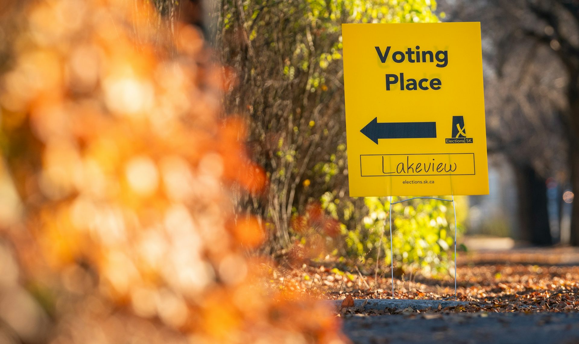 A sign is shown outside a voting place for the recent Saskatchewan general election in Regina in October 2024.