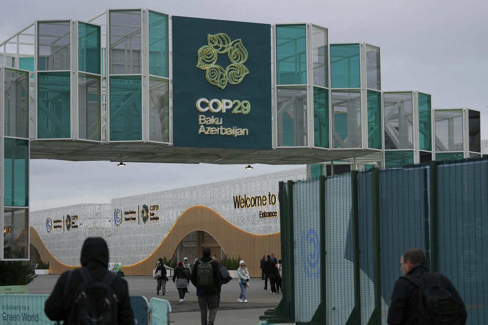 People arrive for the COP29 UN Climate Summit, Nov. 13, 2024, in Baku, Azerbaijan.
