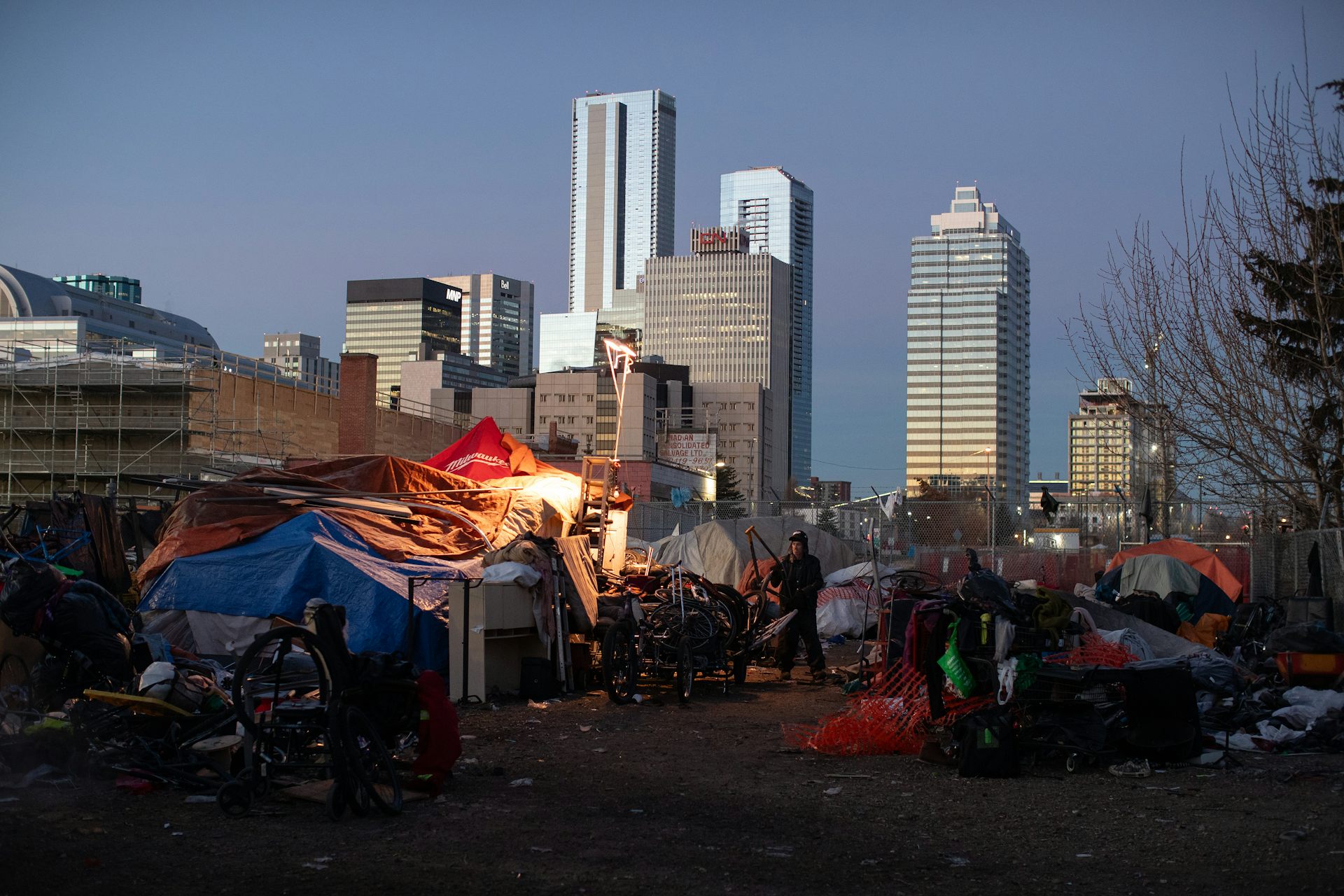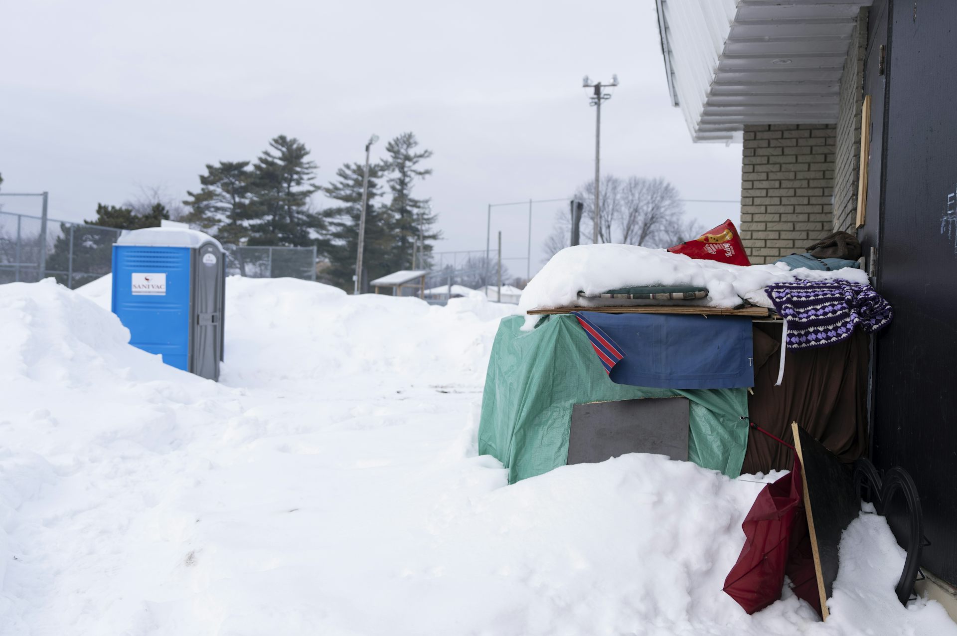 higher rates of homelessness. A homeless tent is seen in a park in Saint-Jerome, Que. on Jan. 25, 2024.