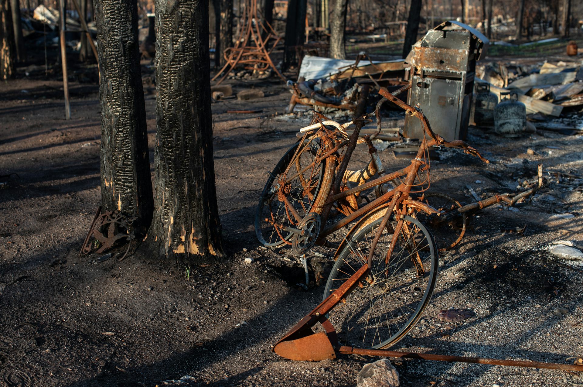 A neighbourhood damaged by the wildfires in Enterprise, N.W.T. in October 2023.