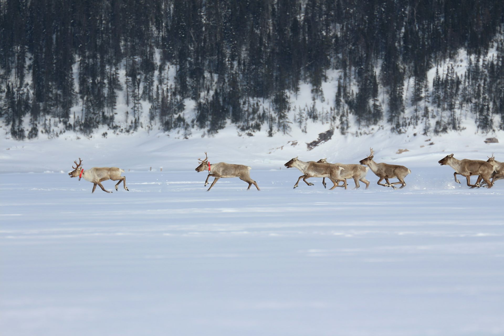 Caribous forestiers de la harde du Pipmuacan. La pression de prédation et la perte d'habitats ont fortement contribué au déclin du caribou dans le sud du Nitassinan.