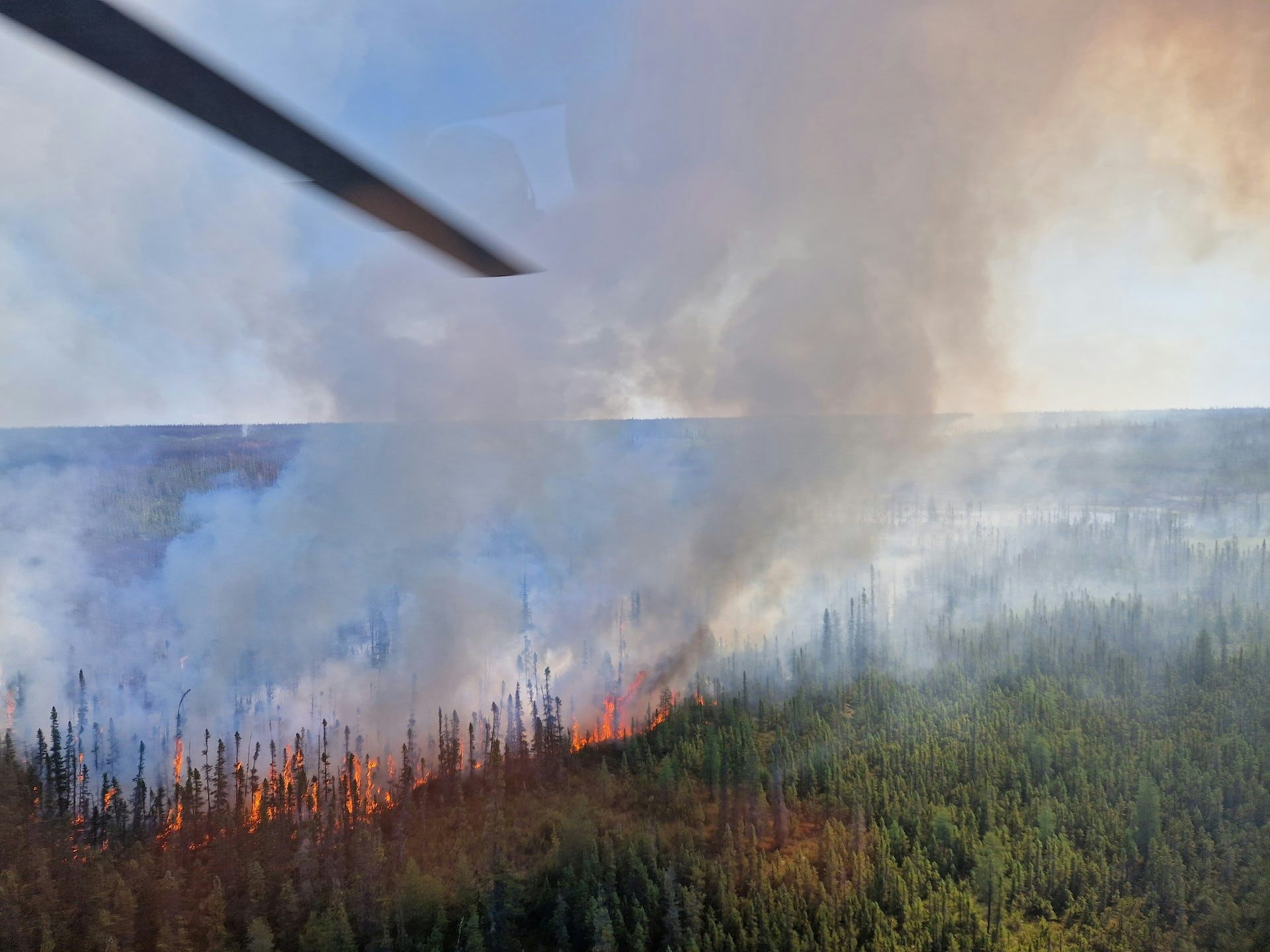 Fumée s'élevant d'un incendie actif dans les Territoires du Nord-Ouest.