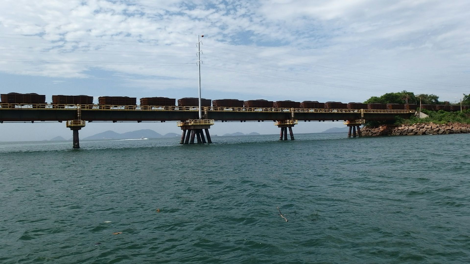 Trens carregados de minério de ferro na Ilha de Guaiba, na Baía de Sepetiba (RJ). Estudos têm demonstrado que derramamentos de óleo, esgoto, lixo, pesticidas, produtos químicos e metais pesados em comunidades de foraminíferos deformam suas carapaças, atrofiam o seu crescimento, afetam sua reprodução causando mesmo o desaparecimento de algumas espécies.