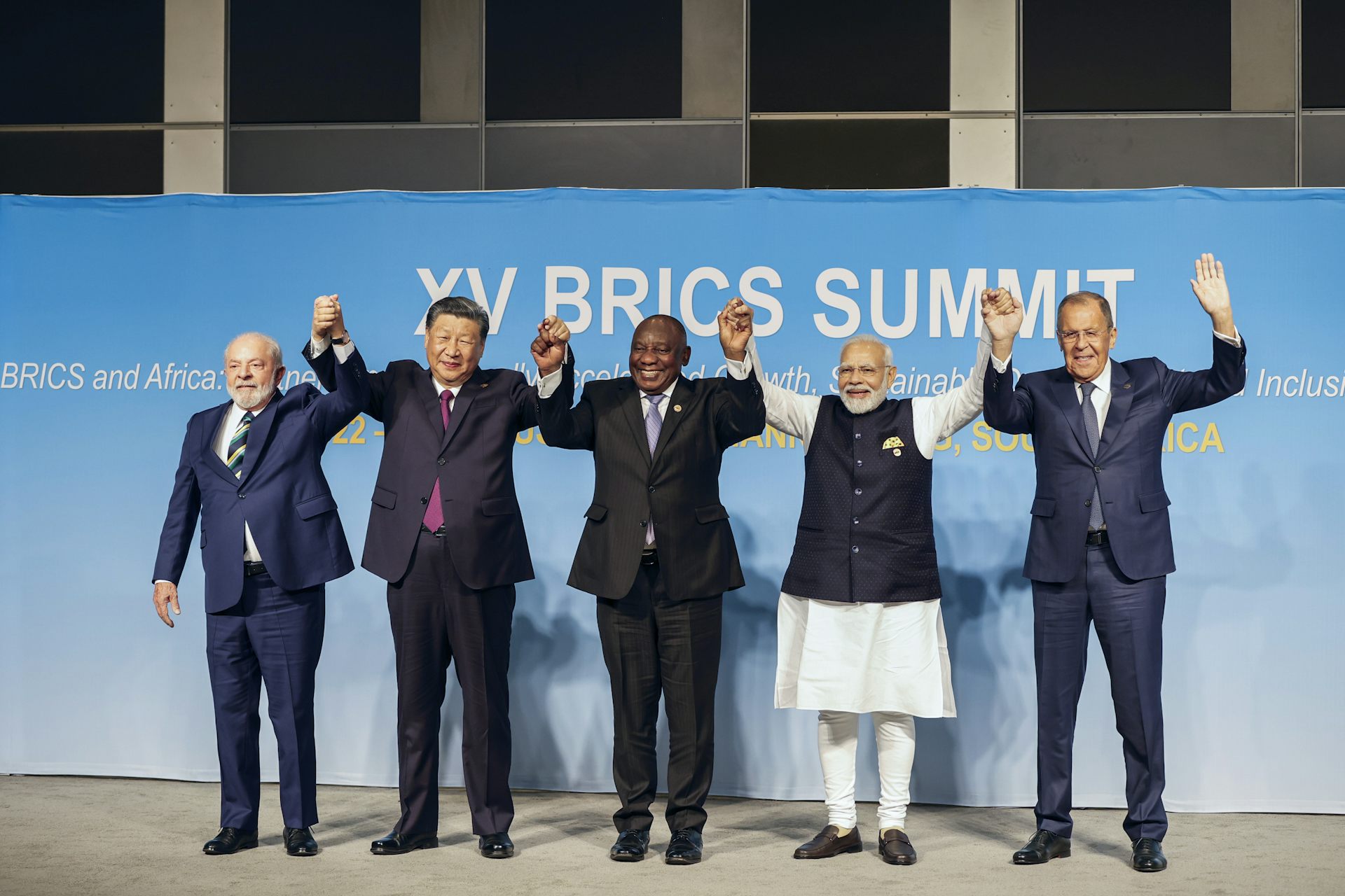 Cúpula do BRICS na África do Sul, em 2023. Coalizão busca fortalecer a posição do Sul Global e reivindicar uma reforma na ordem internacional. O grupo questiona um sistema de regras que privilegia os interesses das grandes potências, ignorando as necessidades dos países em desenvolvimento.