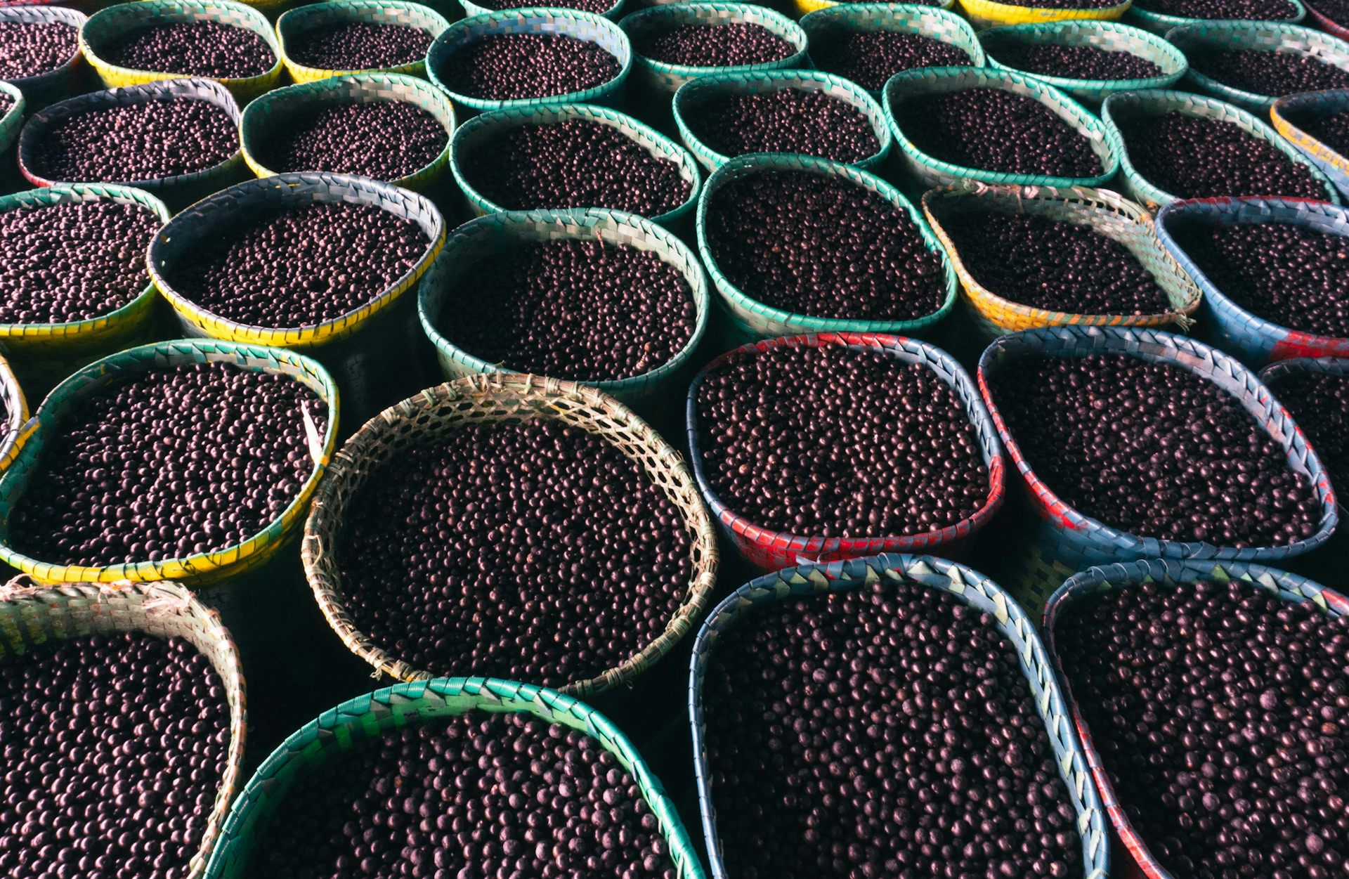 Cestos lotados de açaí em um mercado na Amazônia: estudos da FAPERJ feitos com animais mostram que a suplementação alimentar com o extrato dos caroços dos frutos pode apresentar efeitos muito promissores nos tratamentos para a redução da glicemia, do colesterol e da gordura acumulada no fígado.