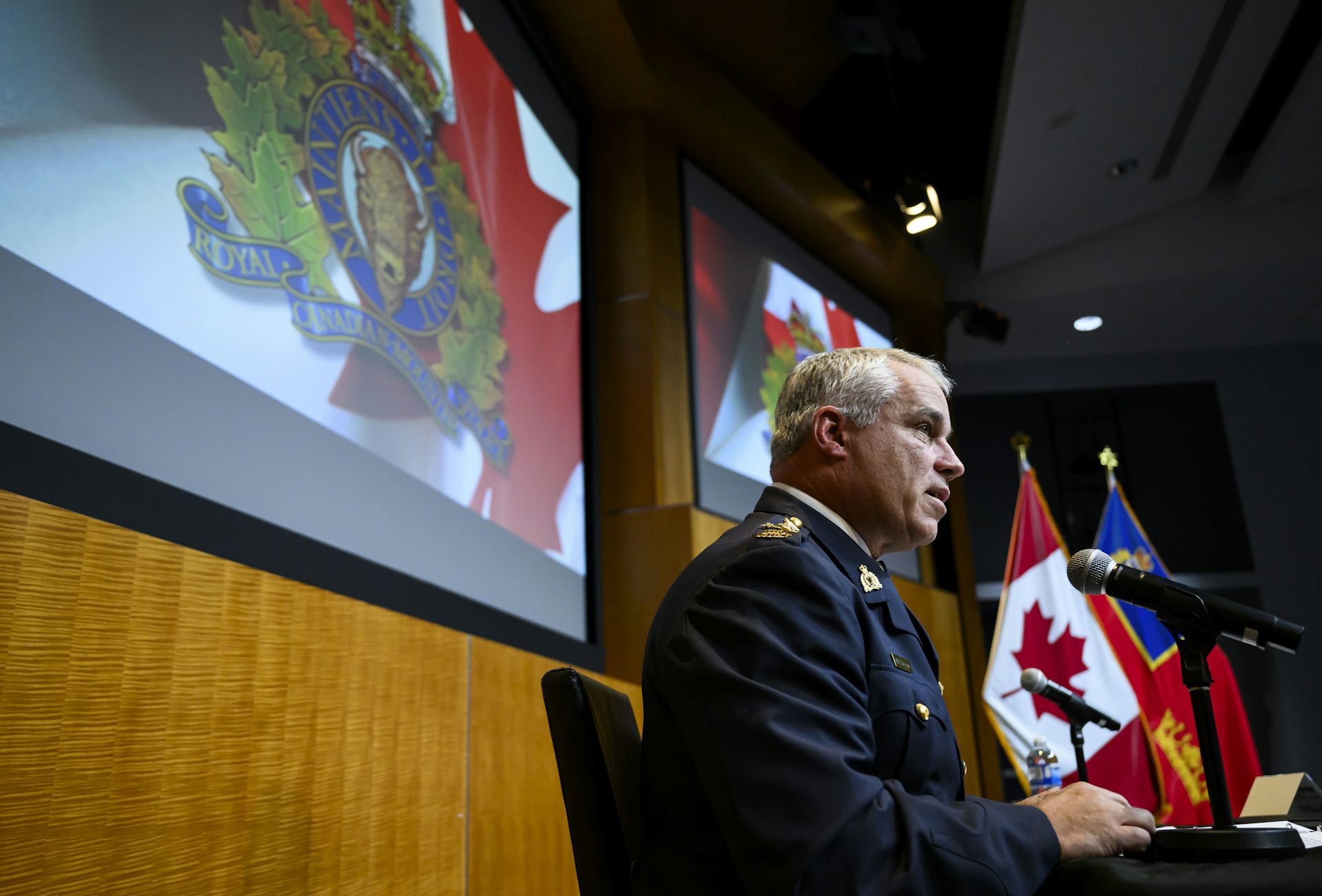 Le commissaire de la GRC, Michael Duheme, lors d’une conférence de presse à propos des allégations contre le gouvernement indien.