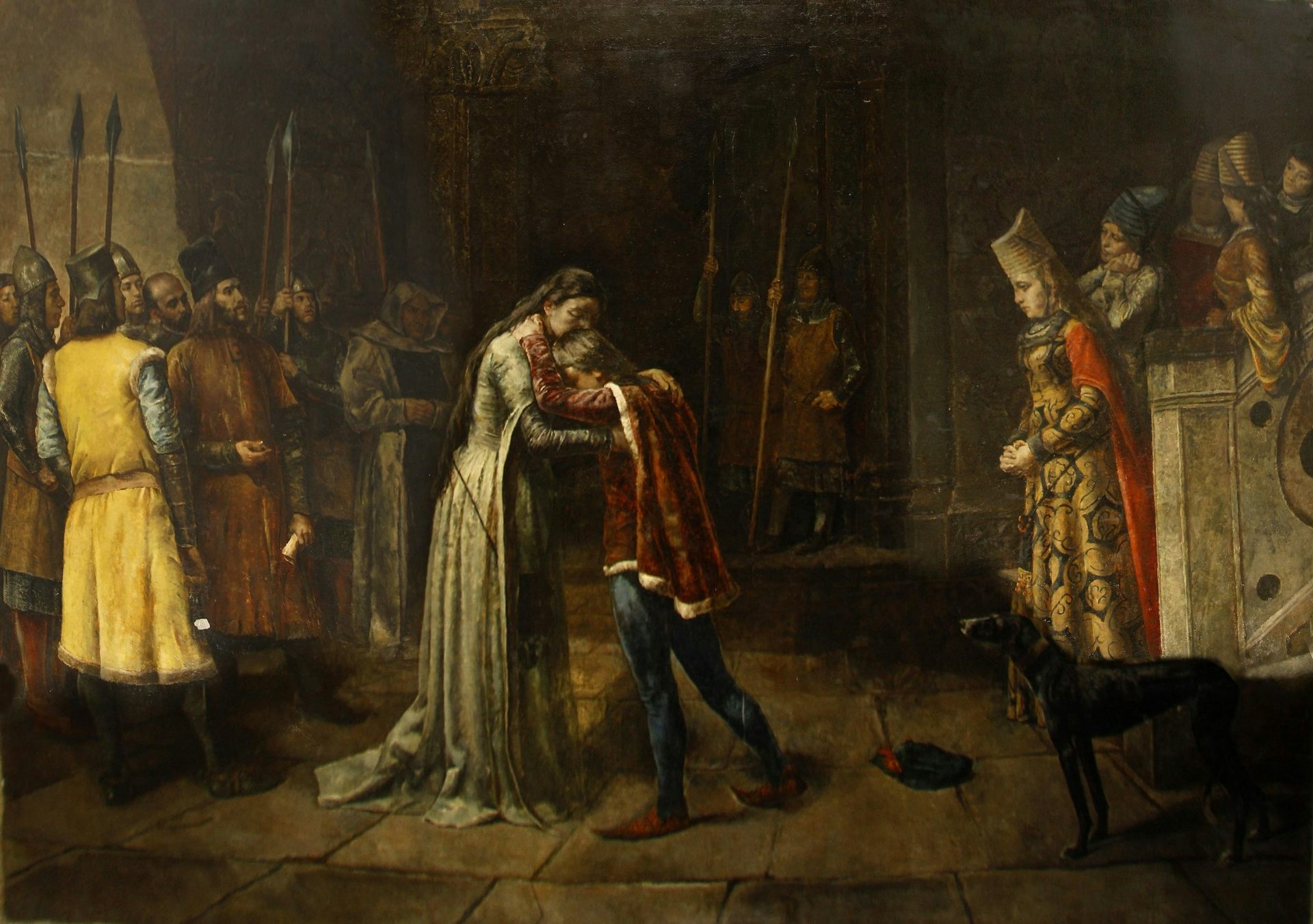 ‘La última despedida’, de Antonio Amorós, representa el momento en que Leonor de Guzmán se despide de su hijo Fadrique Alfonso de Castilla en presencia de la reina María de Portugal. Es una pintura del siglo XIX que ejemplifica la imagen que se ha transmitido de ambas mujeres a lo largo de la historia.