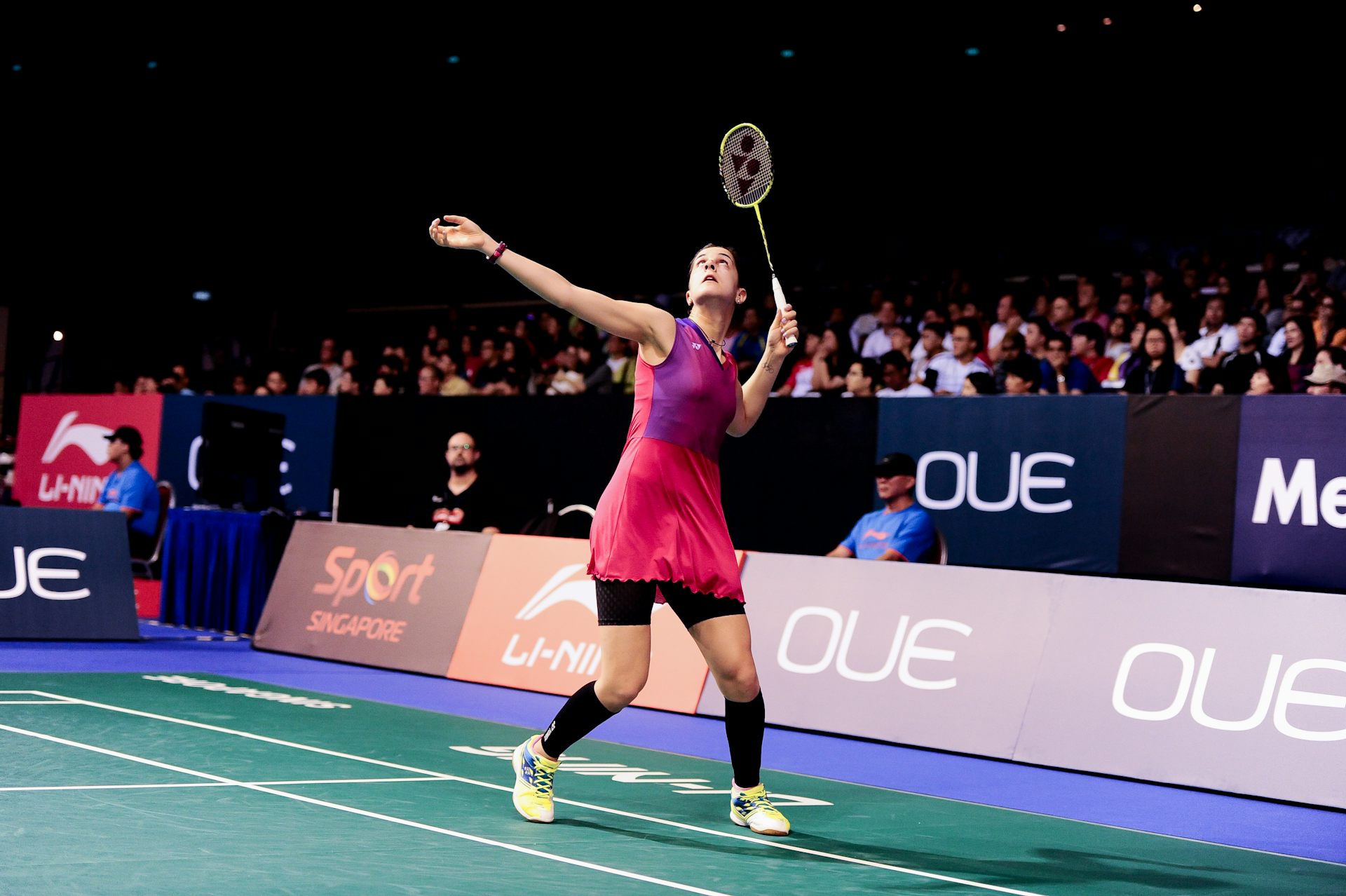 Carolina Marín (España) contra Akane Yamaguchi (Japón) en los cuartos de final de la OUE Singapur 2016.
