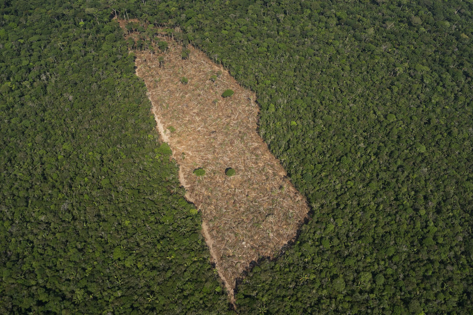 Clareira formada na floresta por exploração ilegal de madeira: enquanto o fluxo de financiamento para ações contra a degradação da Amazônia continuam baixos e mal aplicados, a devastação continua correndop solta na região.