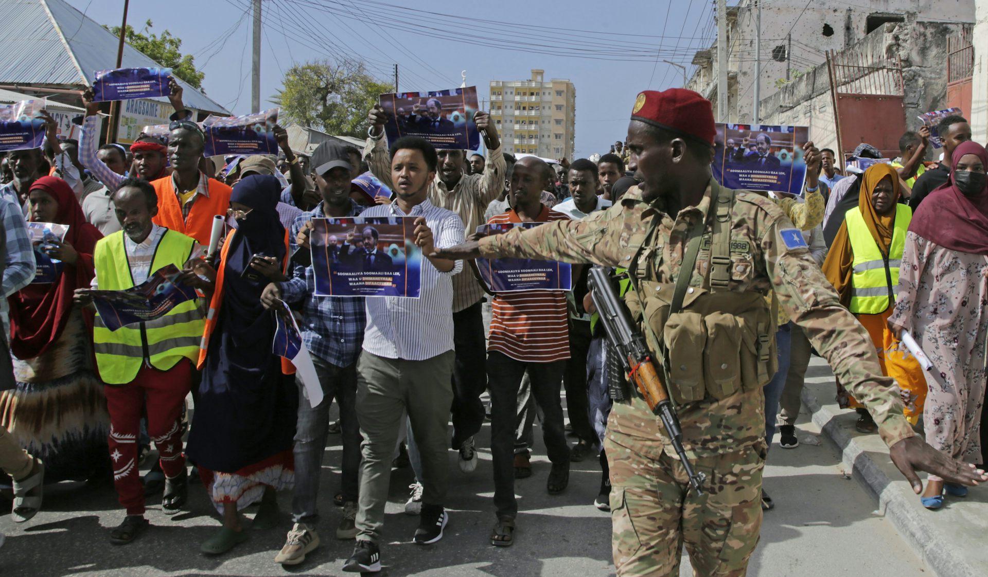 Des milliers de personnes protestent à Mogadiscio, Somalie, le 3 janvier 2024, contre un accord signé entre l'Éthiopie et la région sécessionniste du Somaliland pour permettre à l'Éthiopie, pays enclavé, un meilleur accès aux côtes du Golfe d'Aden.