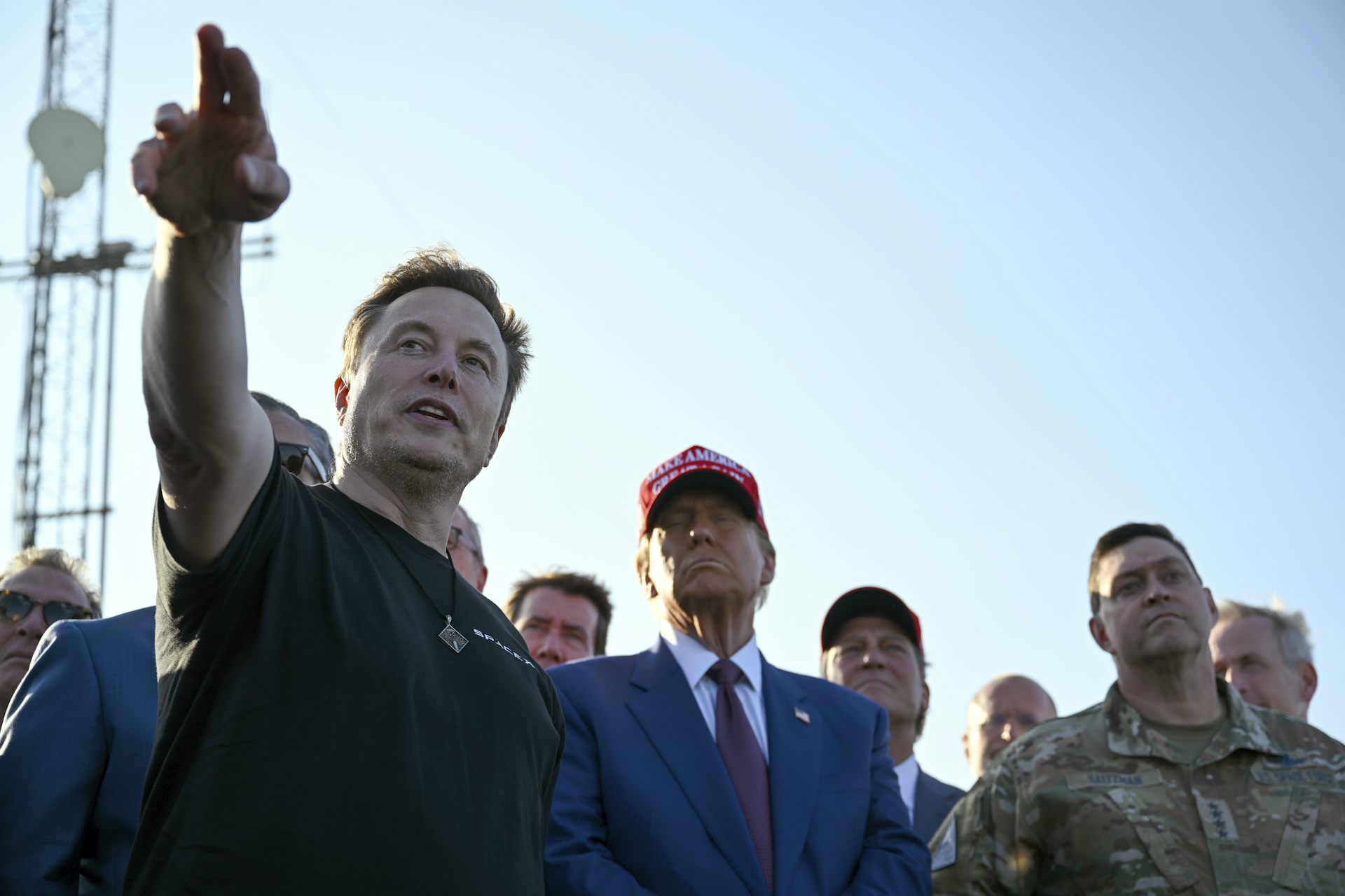 Elon Musk s'entretient avec le président élu Donald Trump avant le lancement du sixième vol d'essai de la fusée SpaceX Starship mardi 19 novembre 2024.