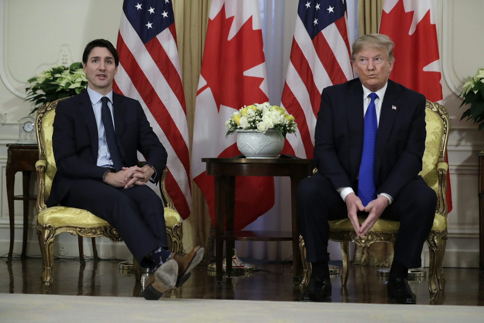 Le président Donald Trump, lors de son premier mandat, rencontre le premier ministre Justin Trudeau à Winfield House, à Londres, le 3 décembre 2019.