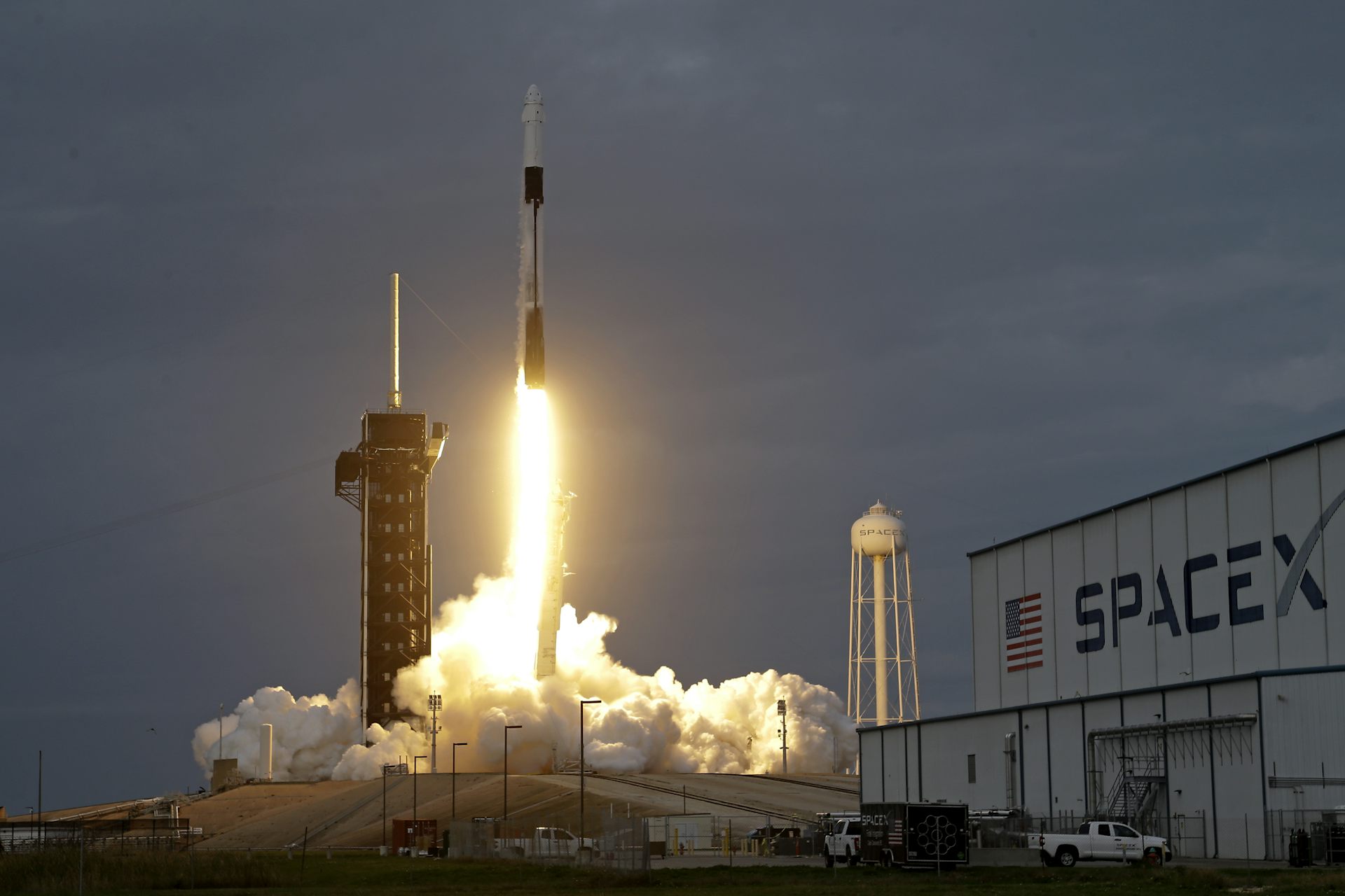 A SpaceX Falcon 9 rocket lifts off from a launch pad at the Kennedy Space Center on Jan. 18, 2024 in Cape Canaveral, Fla. Four private astronauts make their way to the International Space Station.
