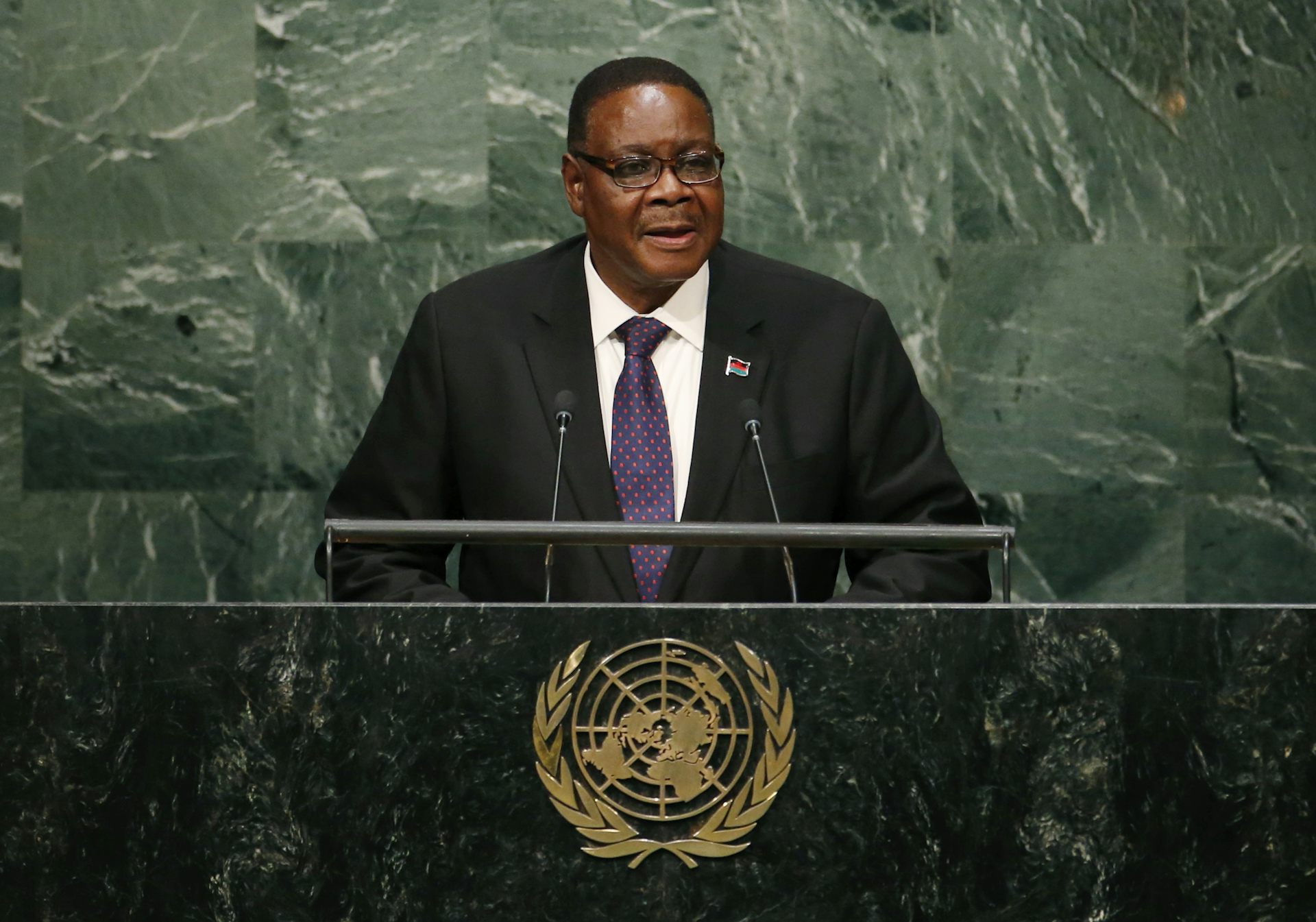 Peter Mutharika, President of Malawi, addresses the 69th United Nations General Assembly. He never went home for a month afterwards.