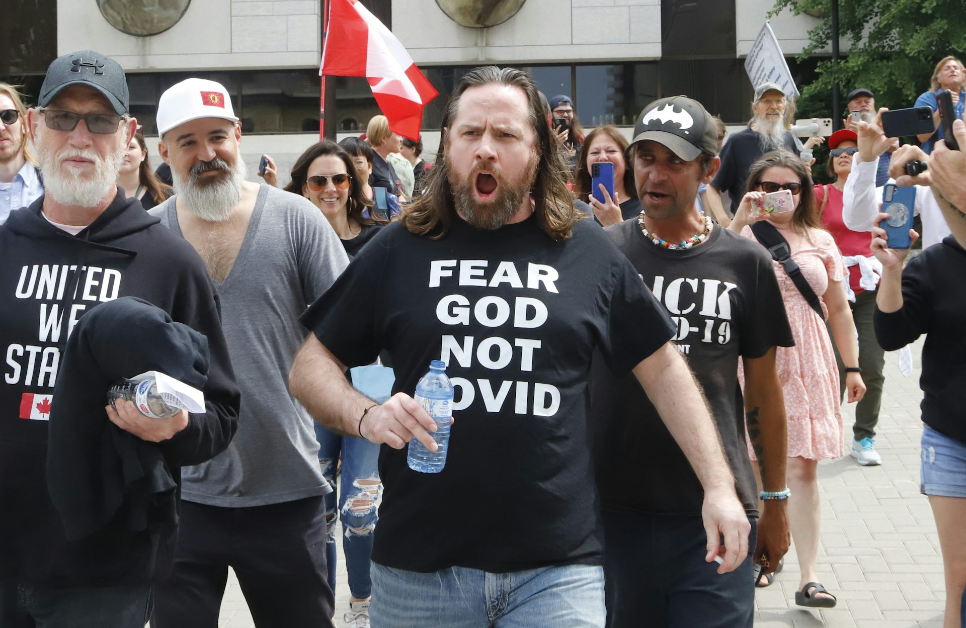 Tyson ‘Freedom George’ Billings, a prominent figure in the ‘freedom convoy,’ leaves the Ottawa courthouse after being released on June 15, 2022.