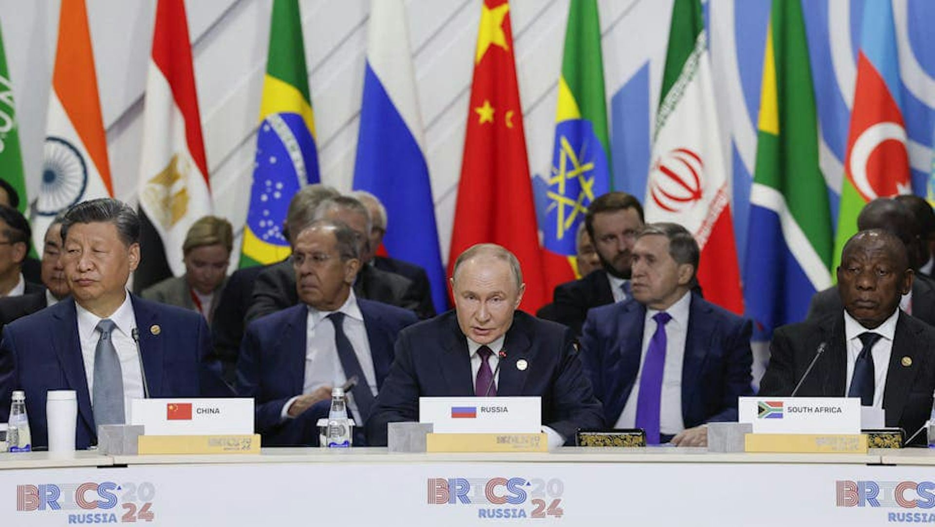 Plusieurs dirigeants mondiaux lors du sommet des Brics à Kazan, le 24 octobre 2024.