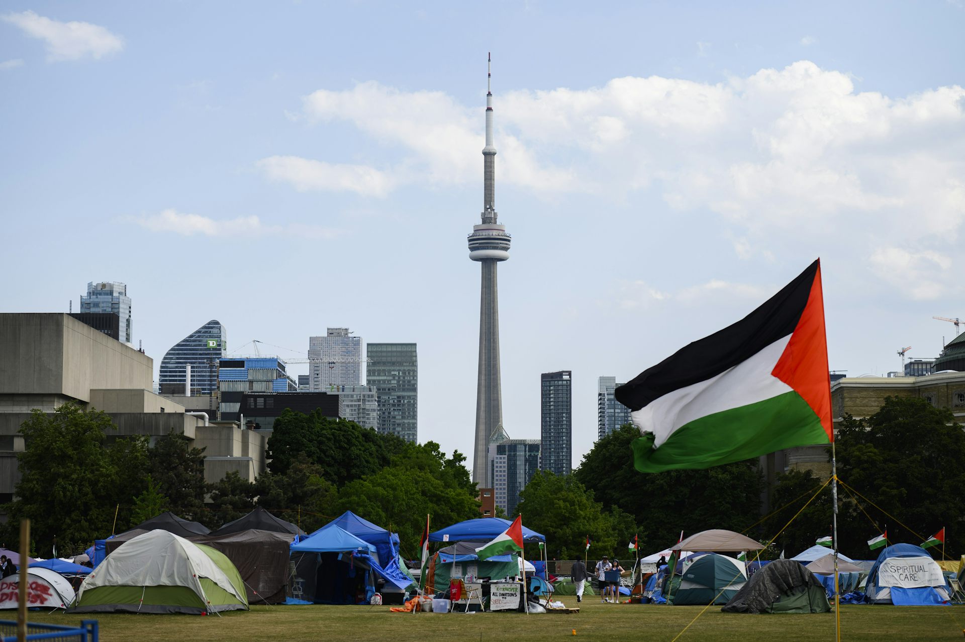 A pro-Palestinian student encampment at the University of Toronto, May 23, 2024.