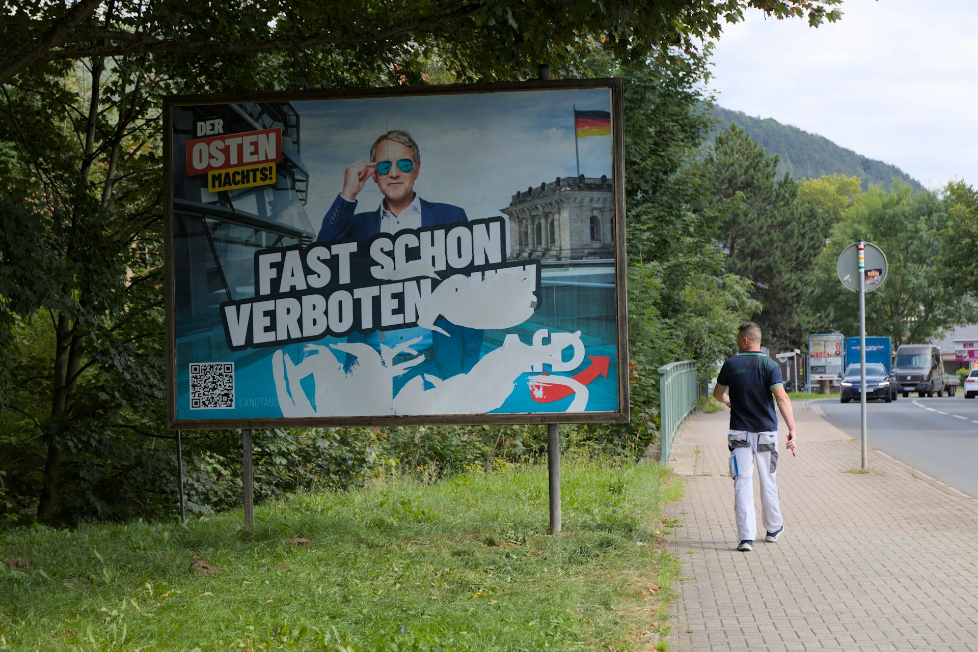 Cartel electoral de la AFD con Björn Höcke como principal reclamo.